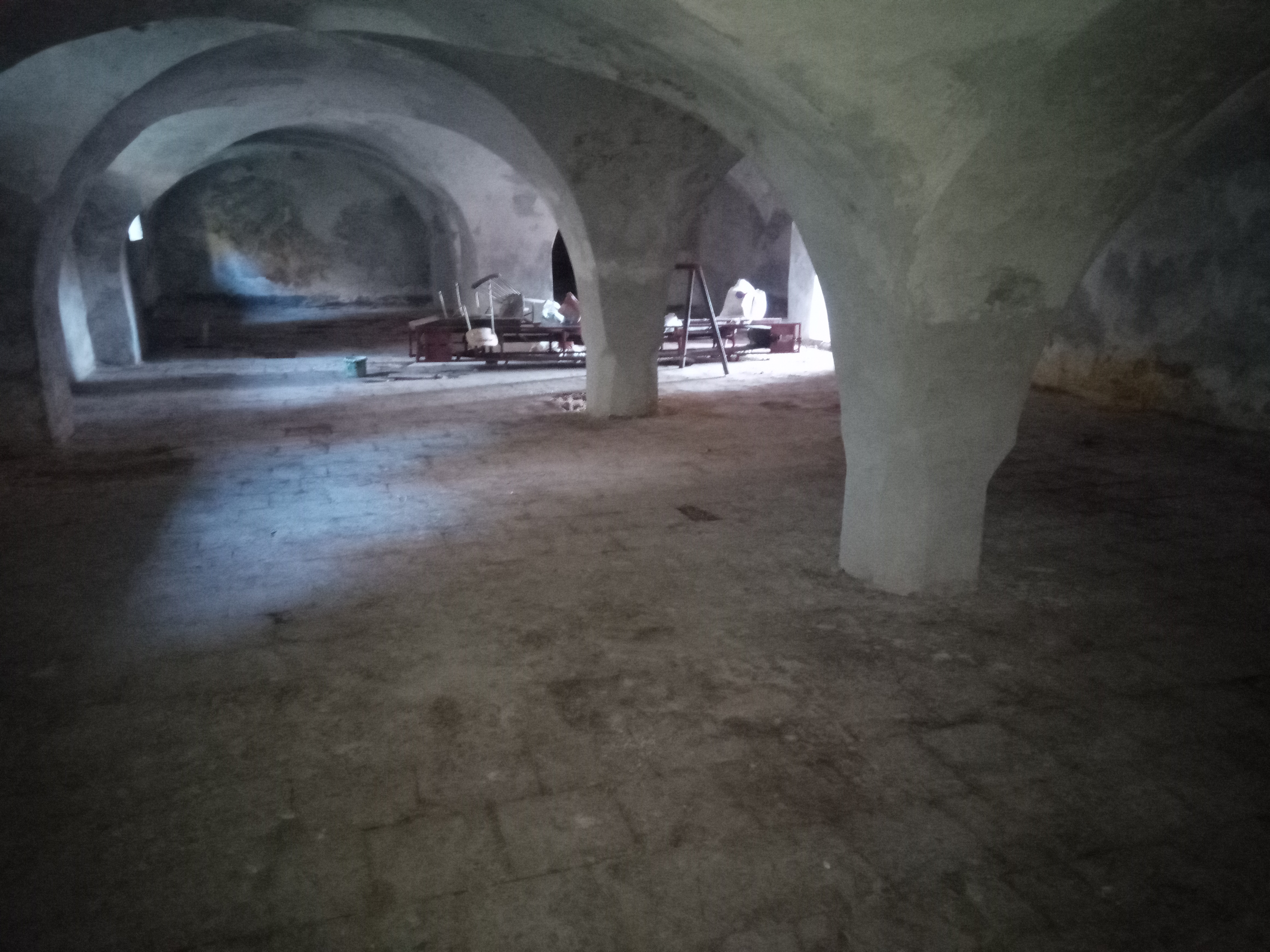 V přízemí klenby sladovny. V patře skladovací prostory.