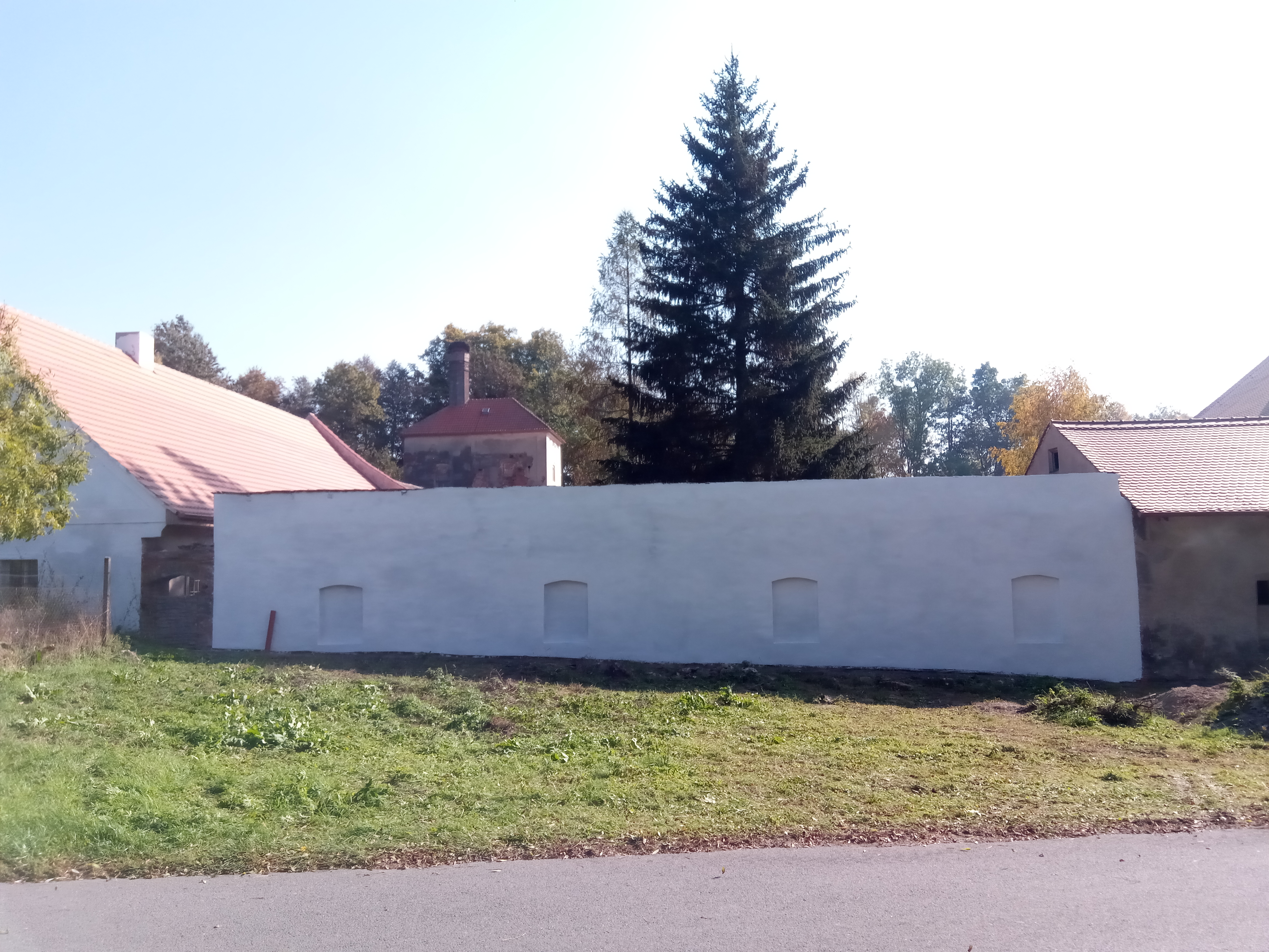 Dvorní kolny. Oprava venkovní zdi.