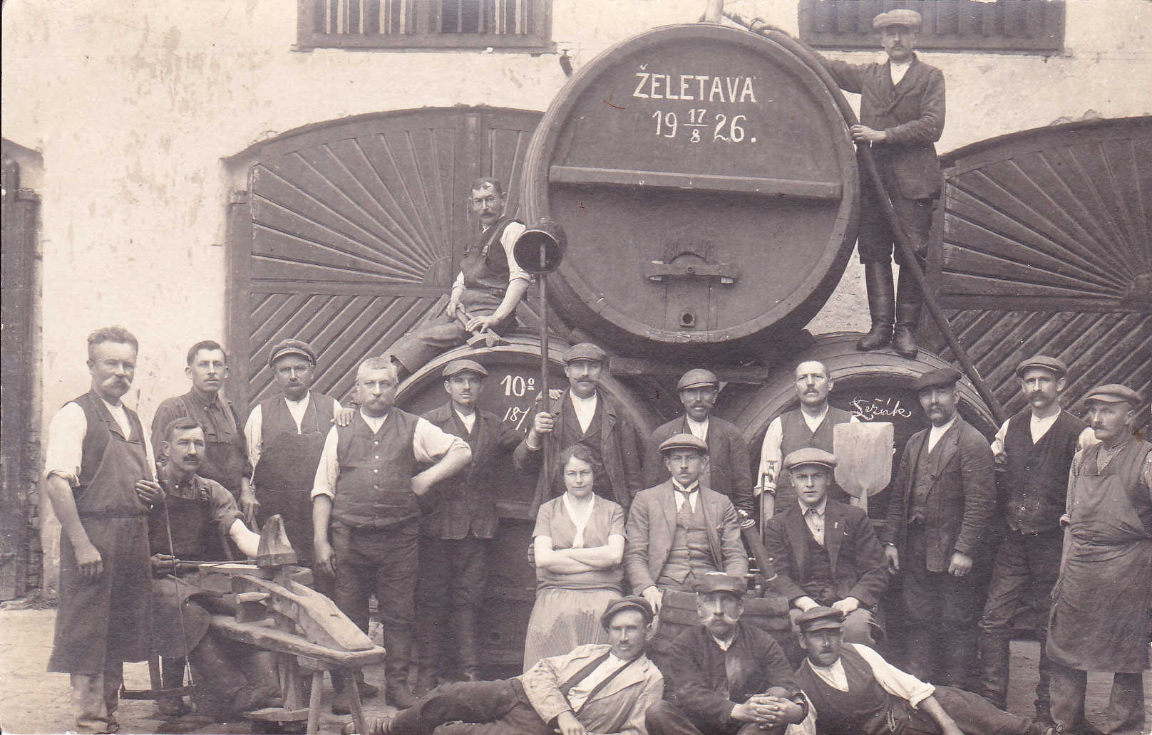 Historické fotografie První várka historických fotografií. Původně starý pivovar. V době zhotovení fotografie využitý jako rozsáhlá sladovna nově zbudovaného Želetavského pivovaru. Povšimněme si sladovnické věže s "Klouboukem pana Starého". Vpravo v popředí je vidět kovárna zbouraná v sedmdesátých letech minulého století. A za ní je vidět kus štítu další dnes již neexistující budovy. U sýpky (budova B) je vidět dnes rovněž zbourané schodiště. Foceno z místa nynější firmy Strojmont.Před budouvou je patrná původní předzahrádka a vpravo zachycena vstupní brána s částí s dnes již zbourané konírny.Postaveno v letech 1667-68 Karlem Fridrichem Kammelem von Hardeggerem. Fotografie zachycuje místo vjezdu do pivovaru a vpravo vstup do Želetavské pivnice z Císařské silnice (nyní dopravní komunikace E38).Pivo se tehdy ještě dopravovalo povozy. A vzhledem k vysoké výtoči je vidět jak povozy na dvoře stály v zástupu čekajíc na vykládku a opětovnou nakládku.I z venčí je vidět, že se jednalo o moderní provoz.Pivovar vždy využíval nové technologie. Zde už jsou koně nahrazovány moderními vozy. V tomto případě vozem tovární značky Praga.Povšimněme si, že zaměstnanci jsou zde zachyceni s nářadím, se kterým pracovali. Můžeme tak identifikovat jednotlivá řemesla a pracovní činnosti v pivovaru. V pozadí na sudech jsou vyvedeny nápisy vyráběných piv. Jediná žena uprostřed je hraběnka Attemsová (rozená Anna Maria Kammel Edle von Hardegger), majitelka pivovaru.