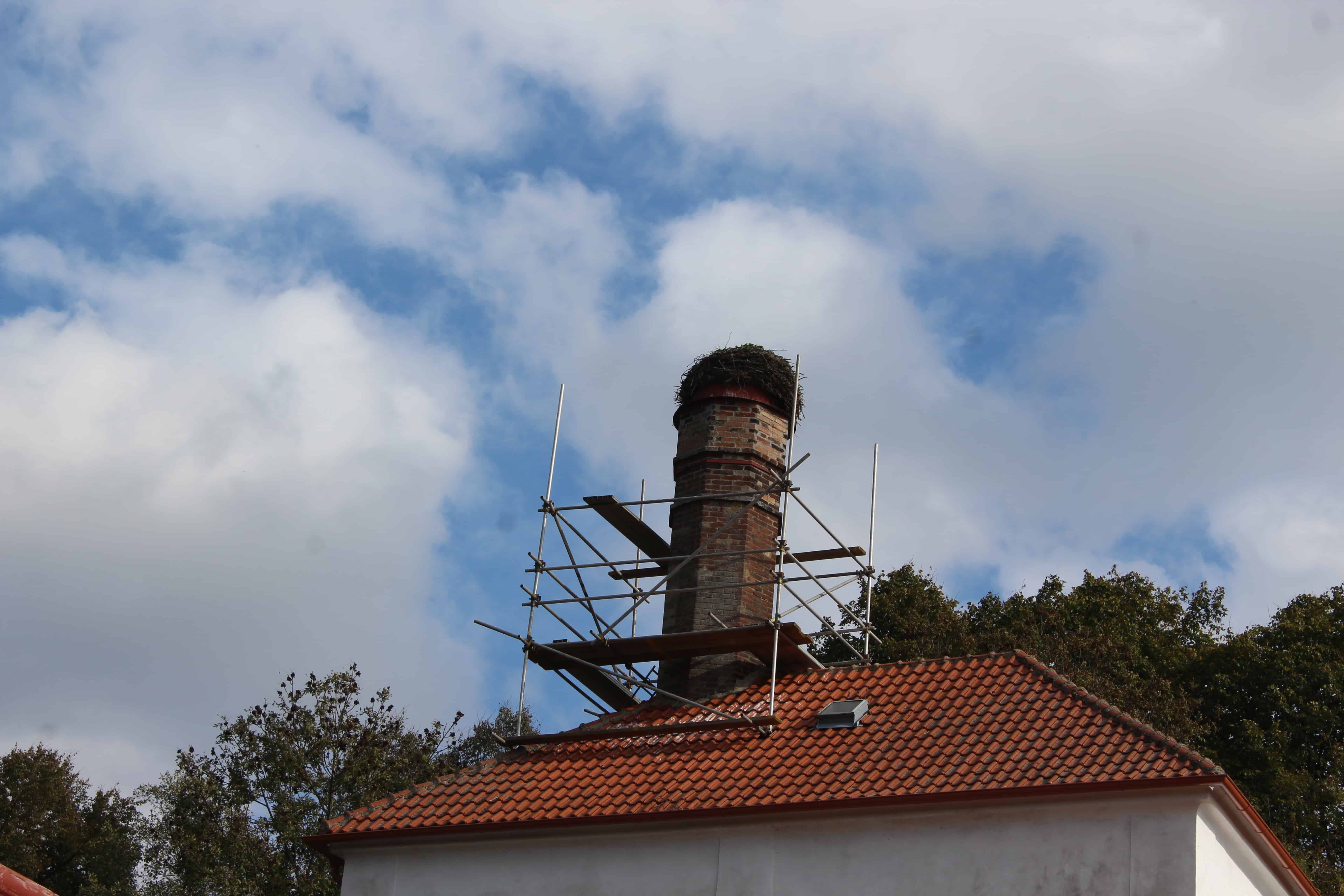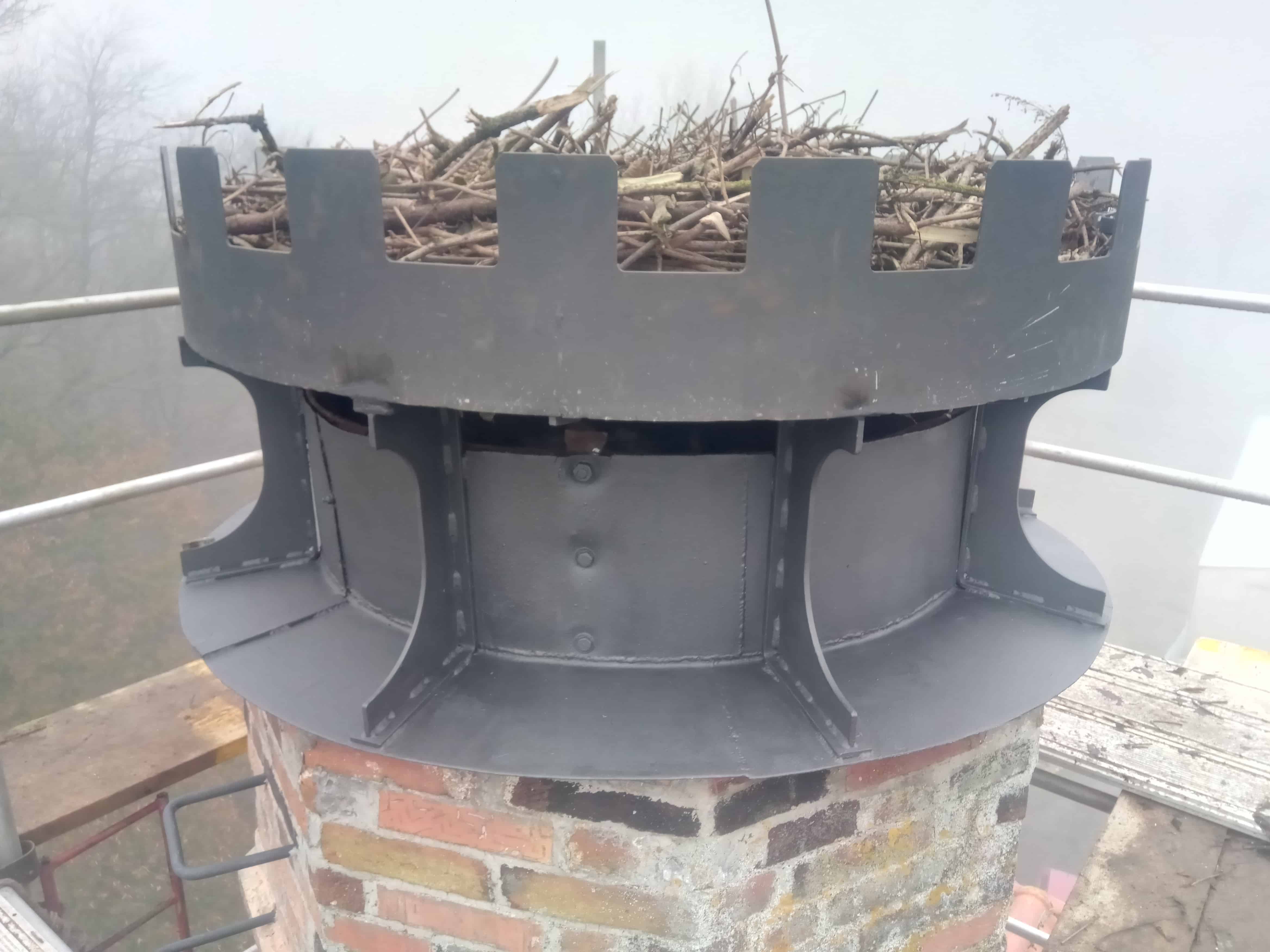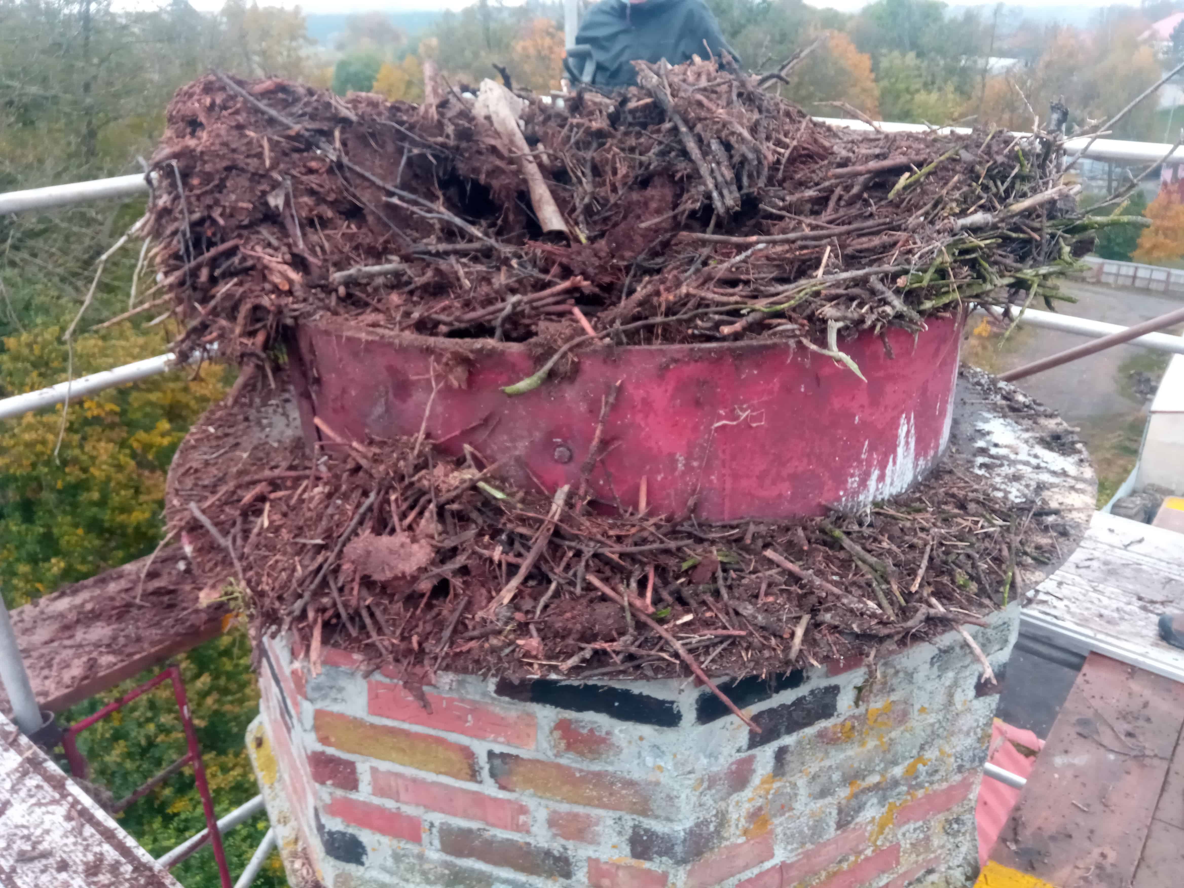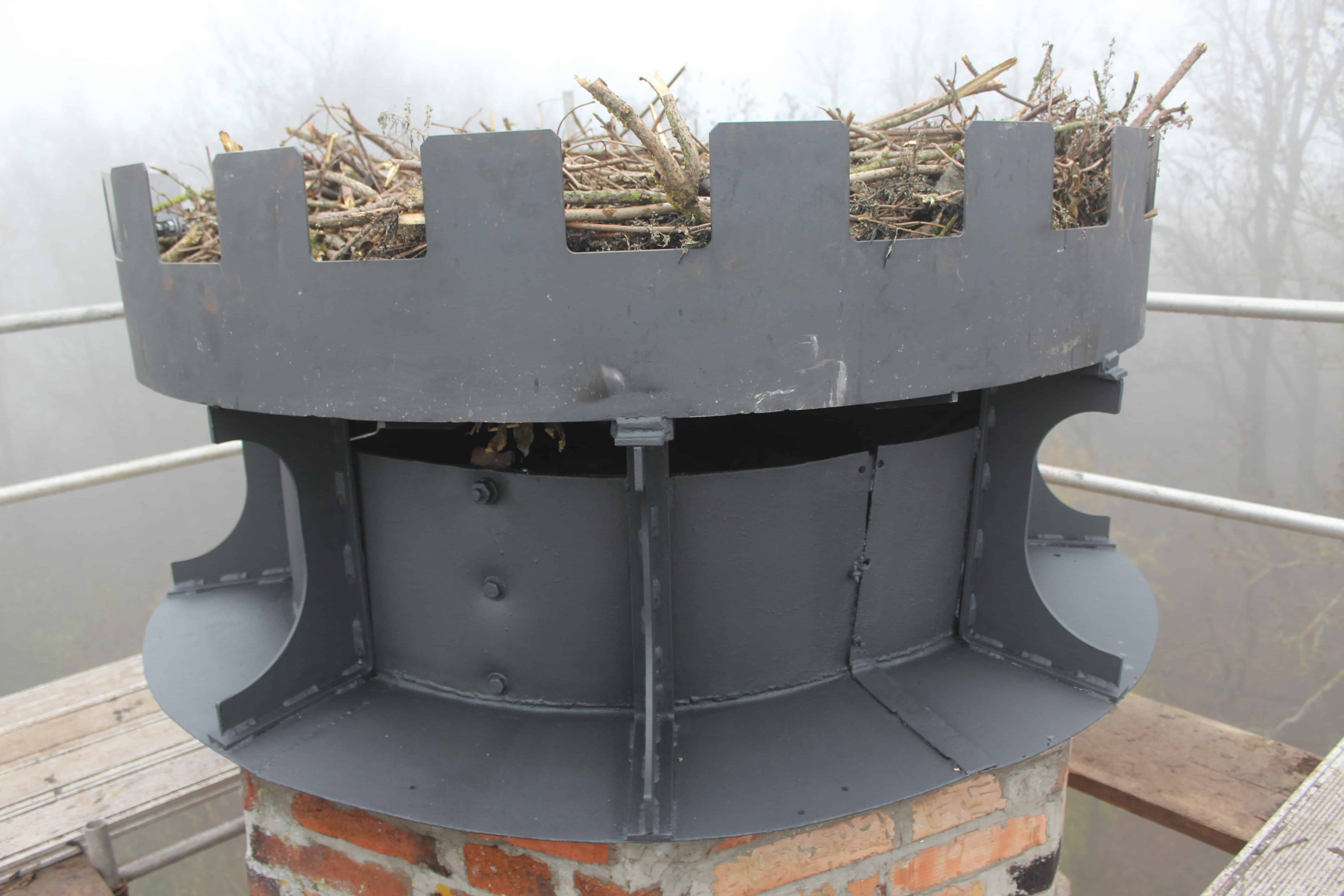 Na pozadí obrázku se nachází jeden z kalfasů s větvemi pro hnízdo.