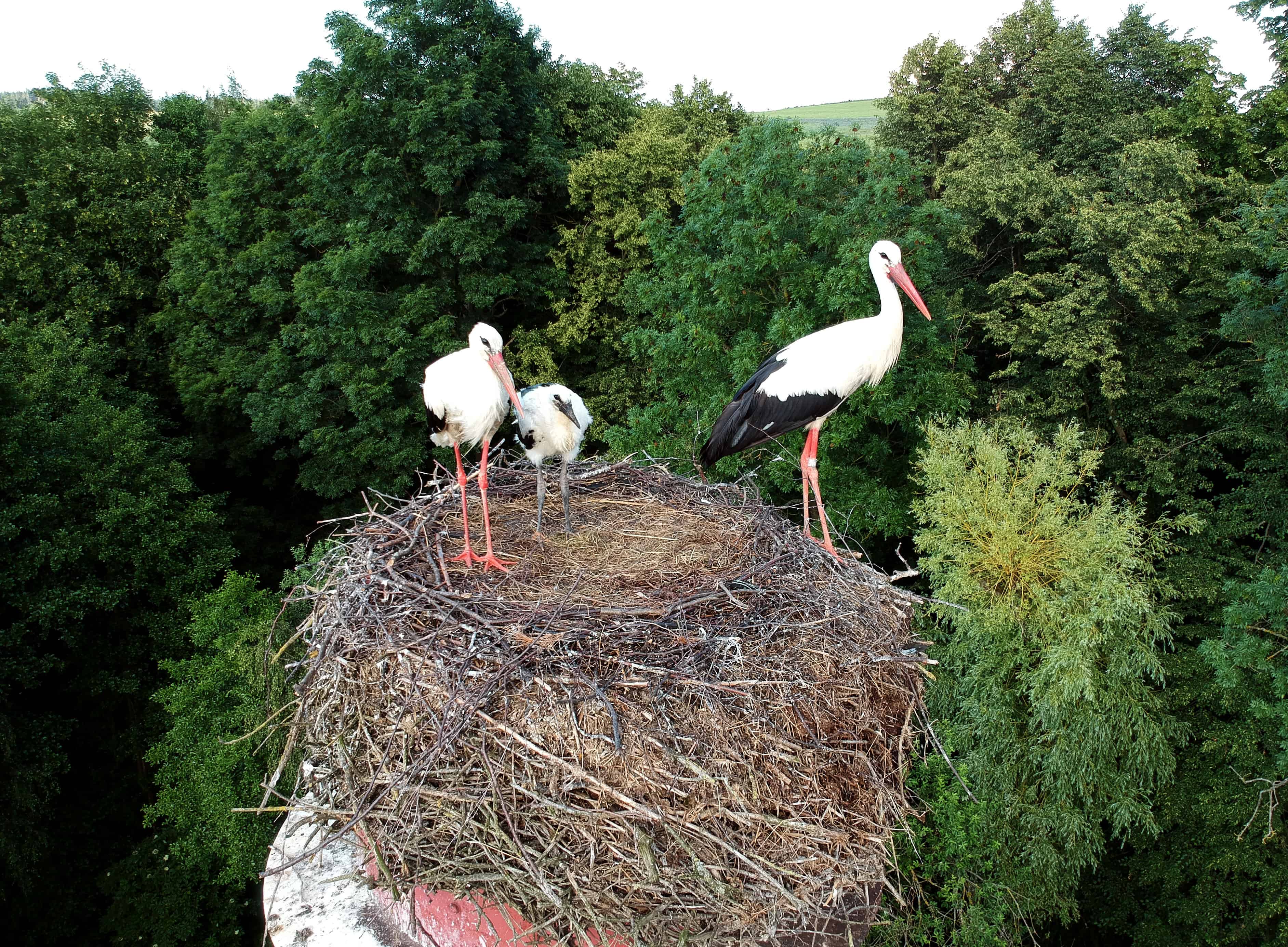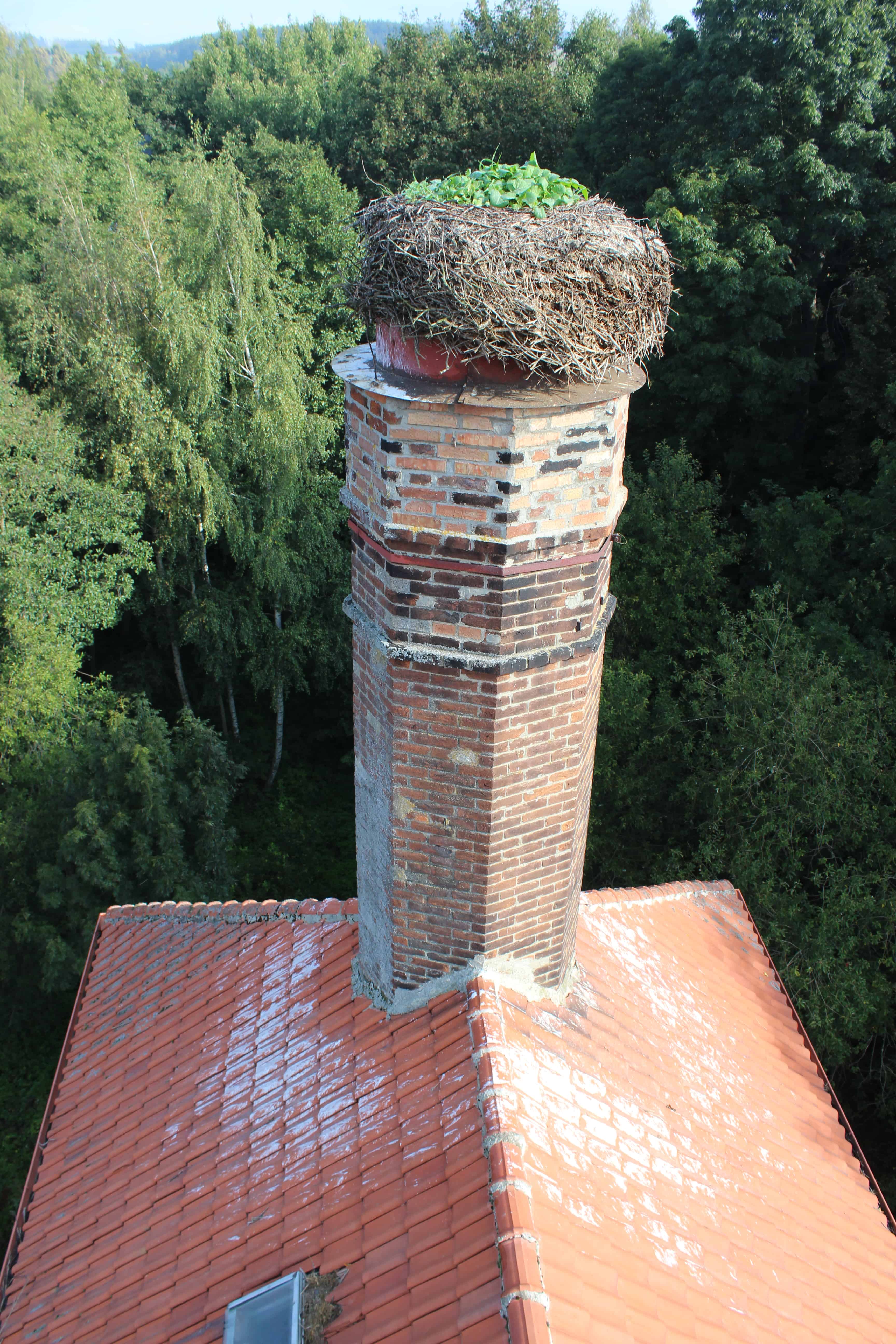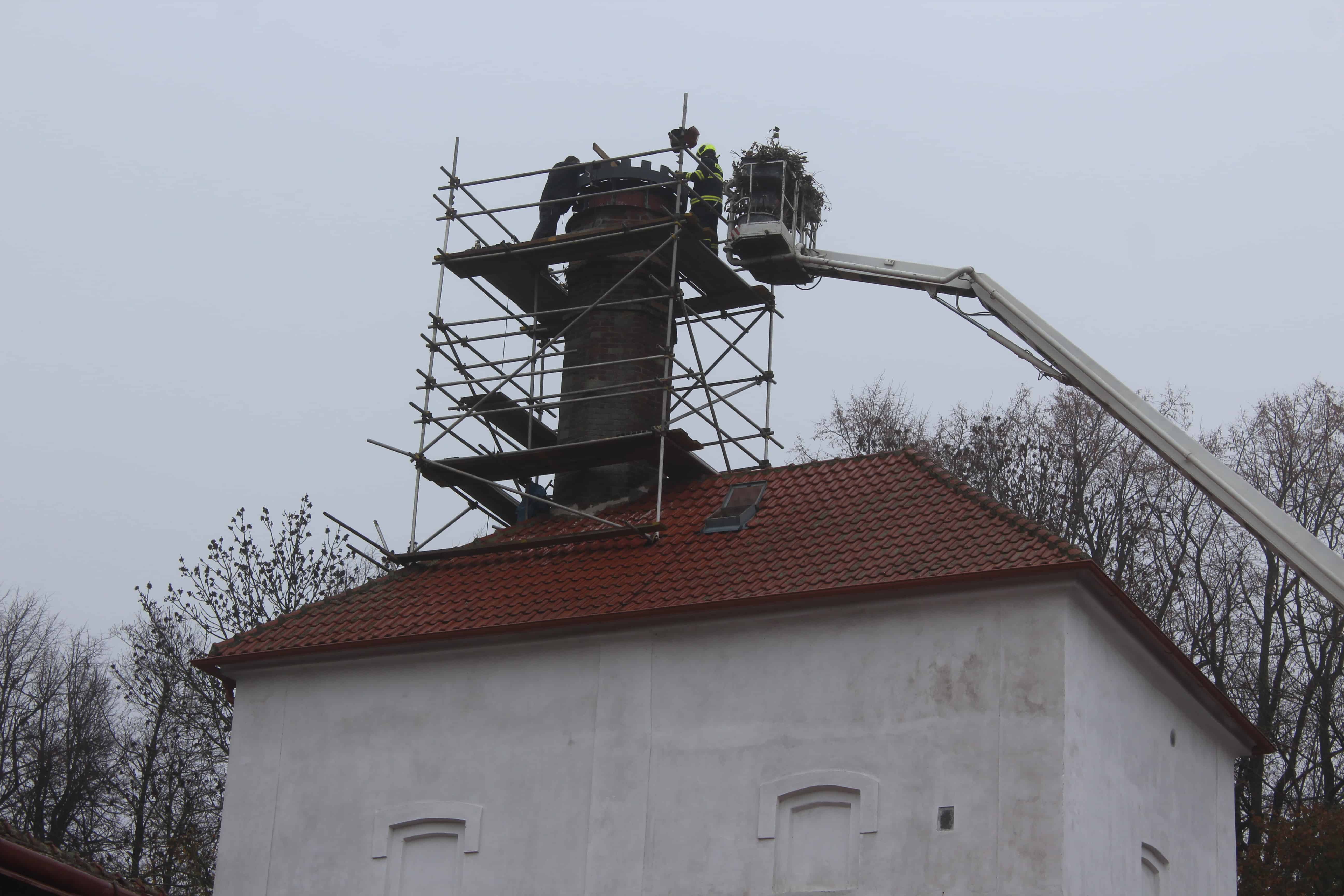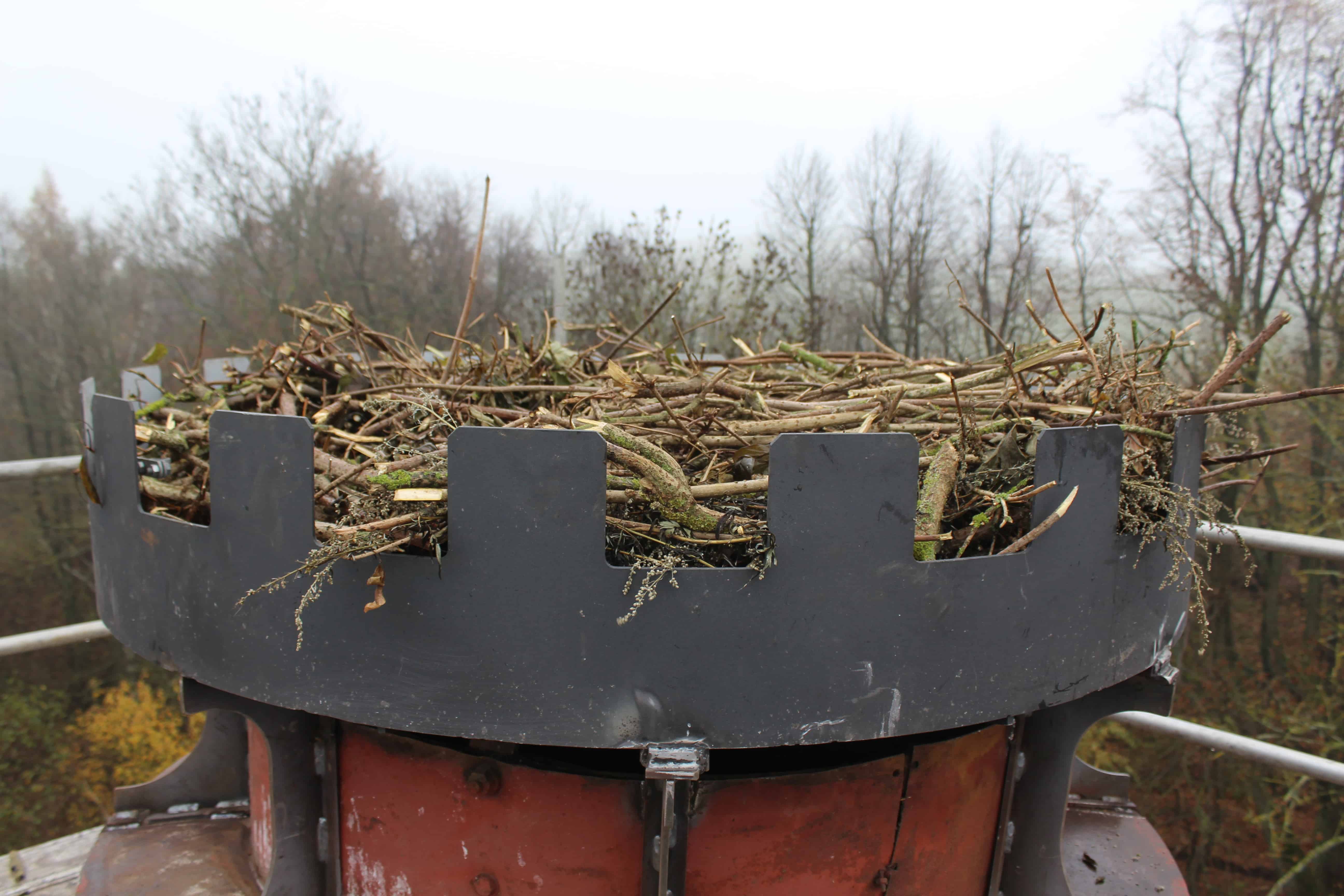 Na pozadí obrázku se nachází jeden z kalfasů s větvemi pro hnízdo.