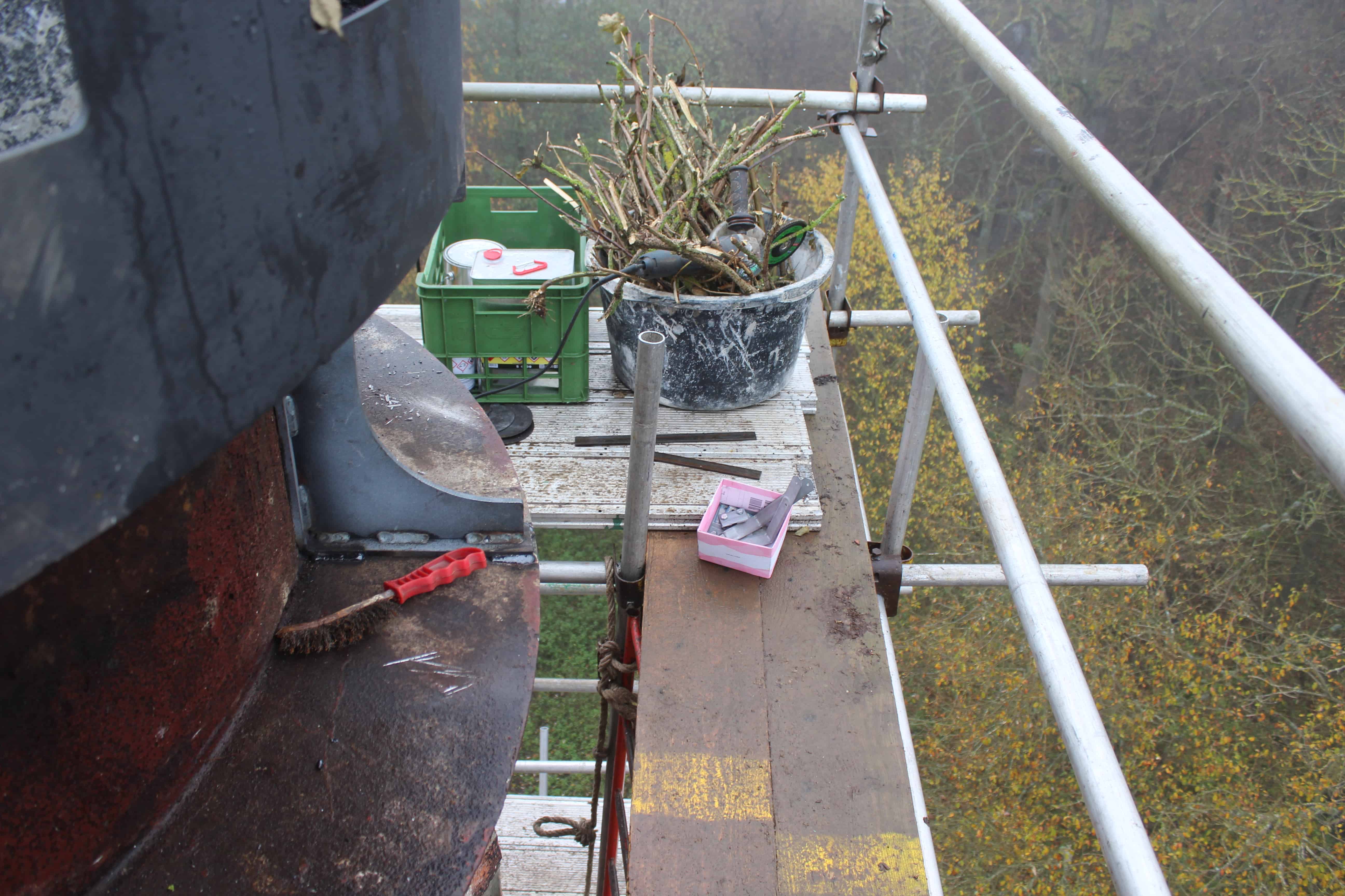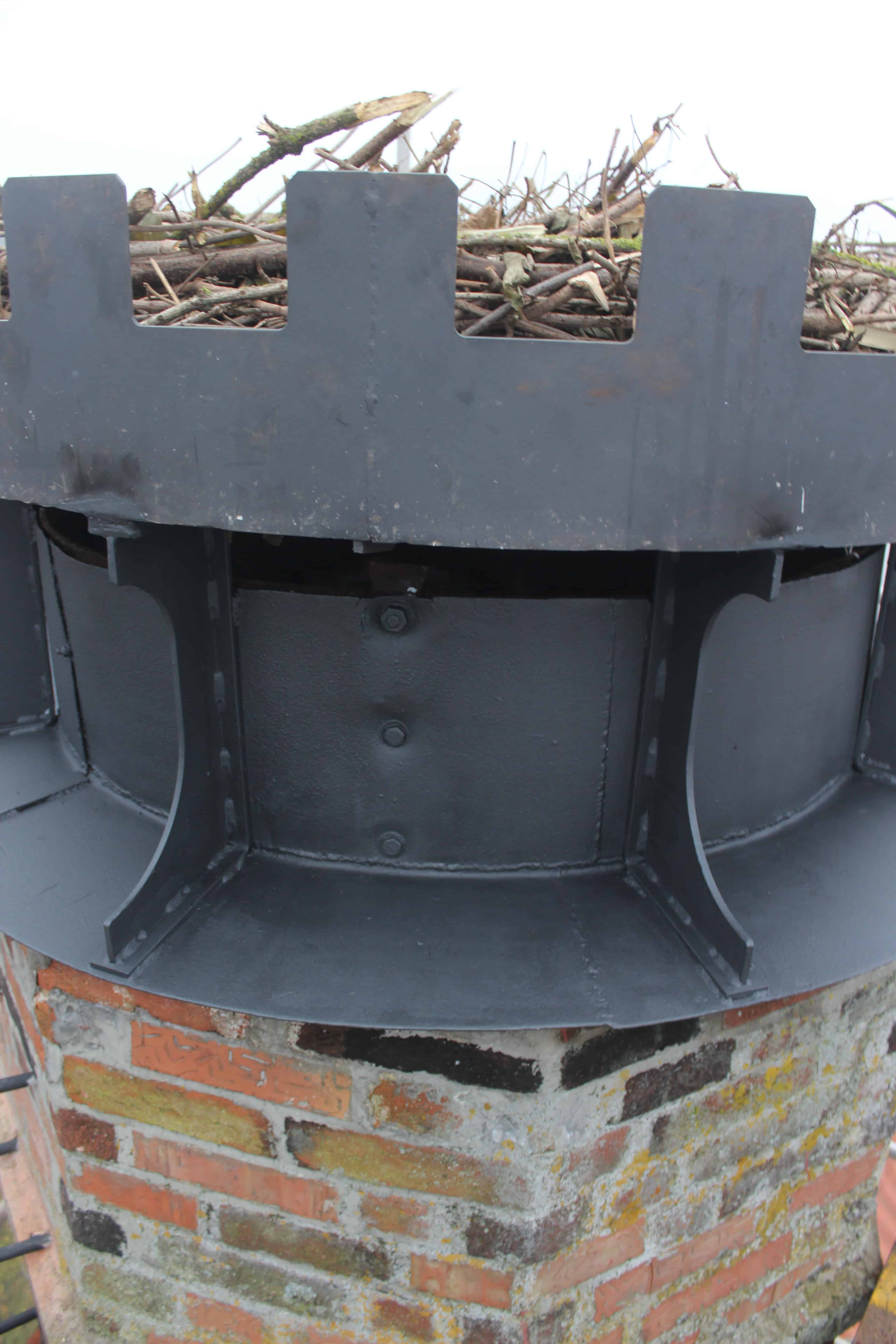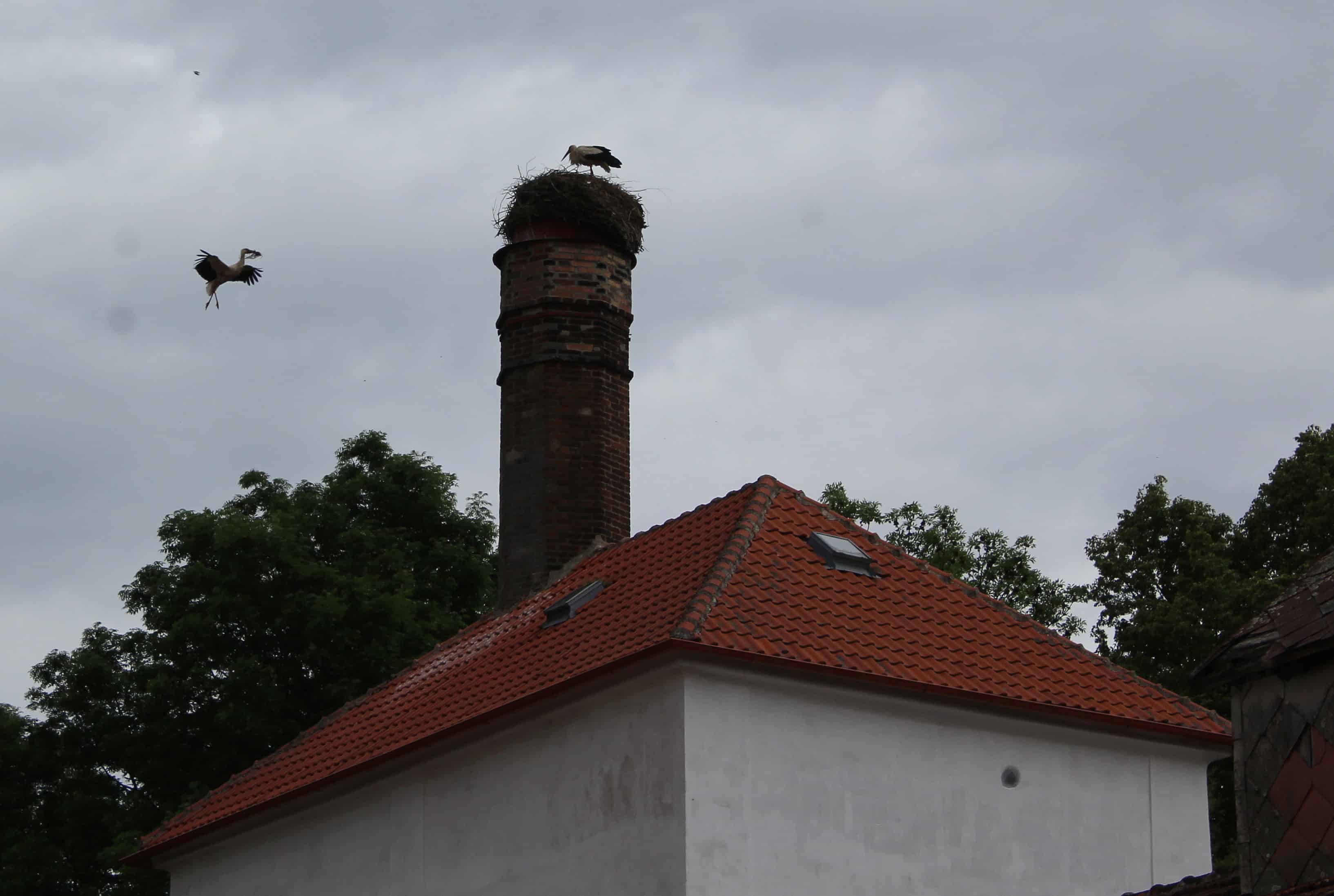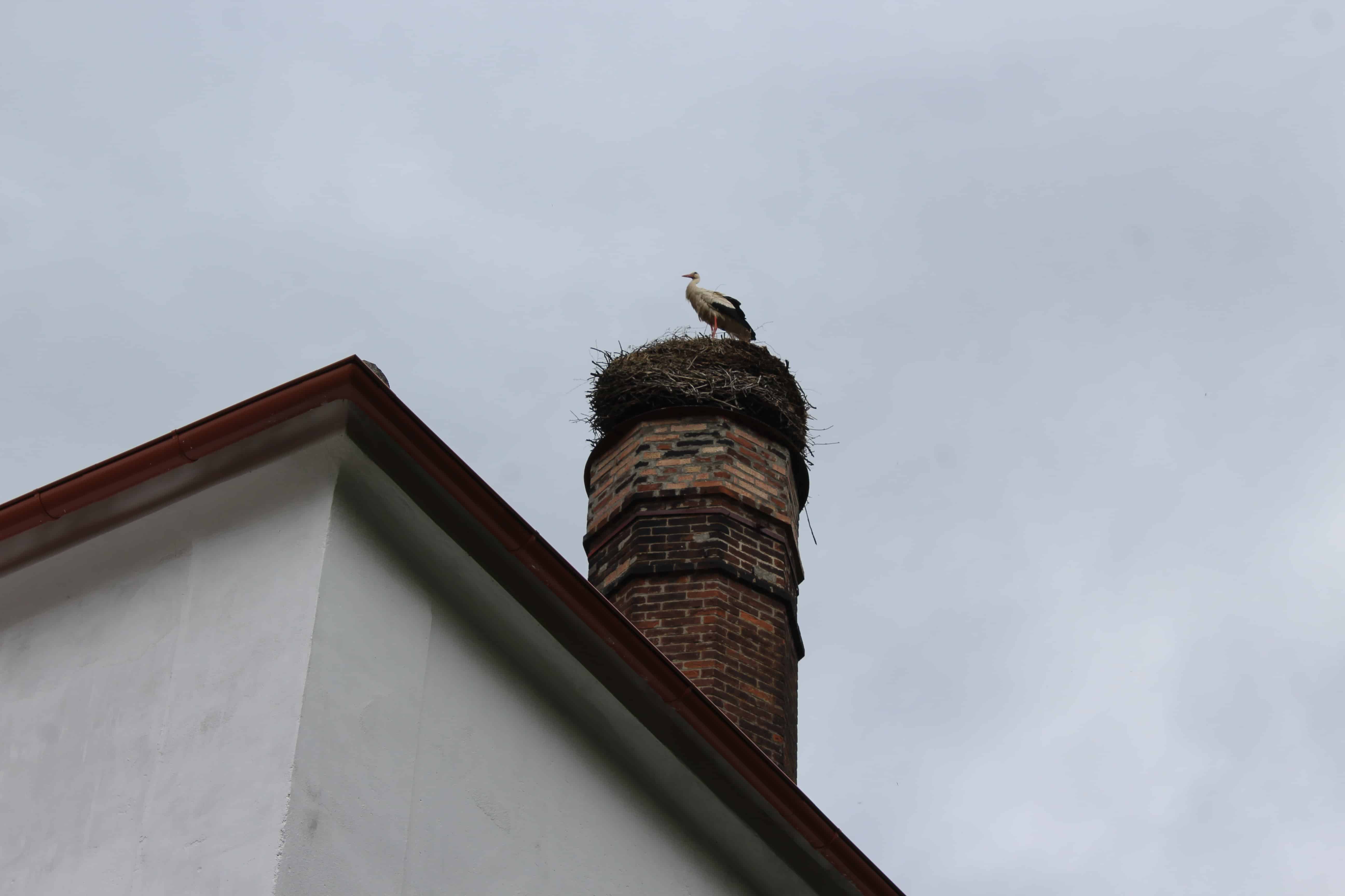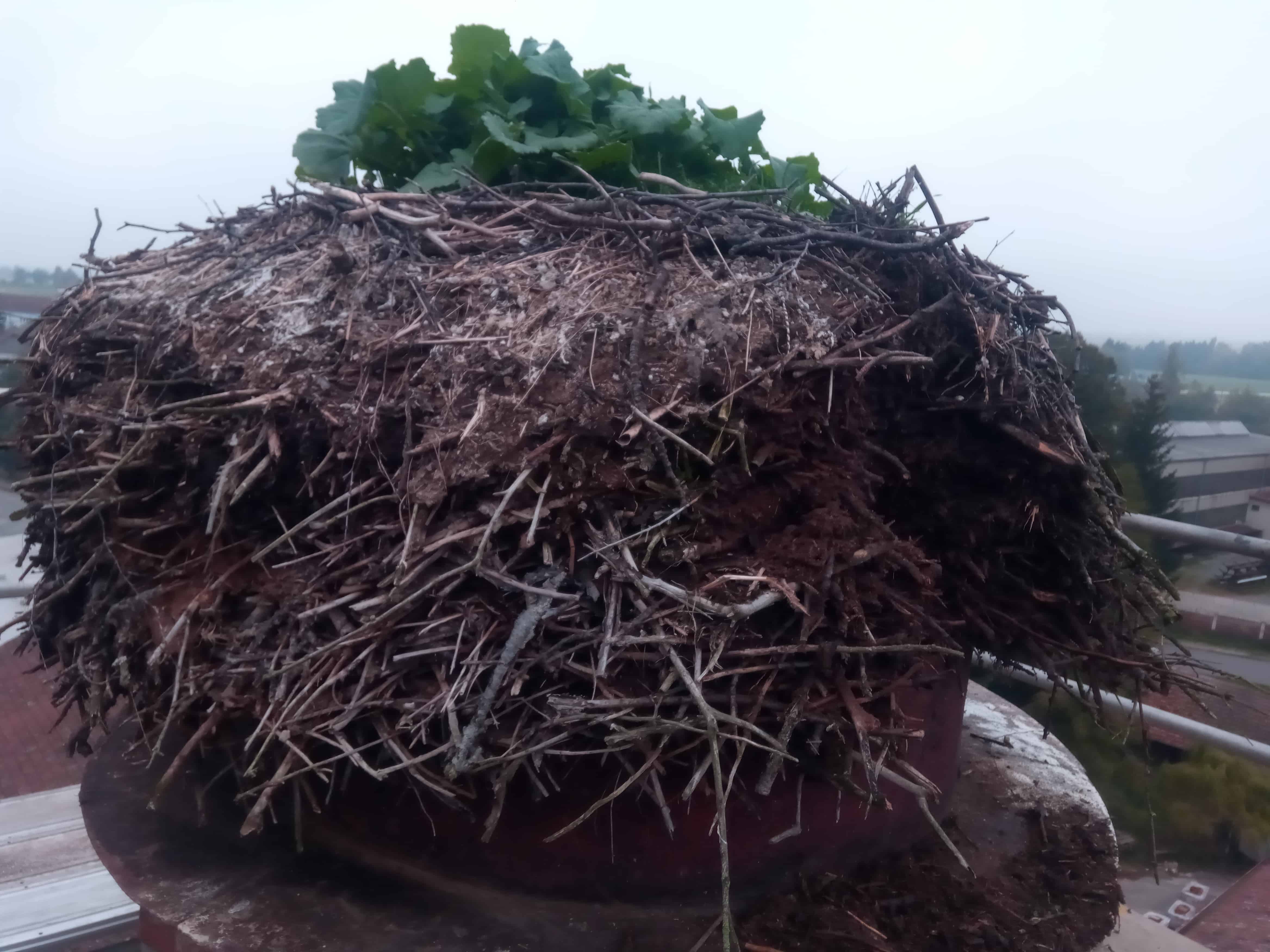 Na pozadí obrázku se nachází jeden z kalfasů s větvemi pro hnízdo.