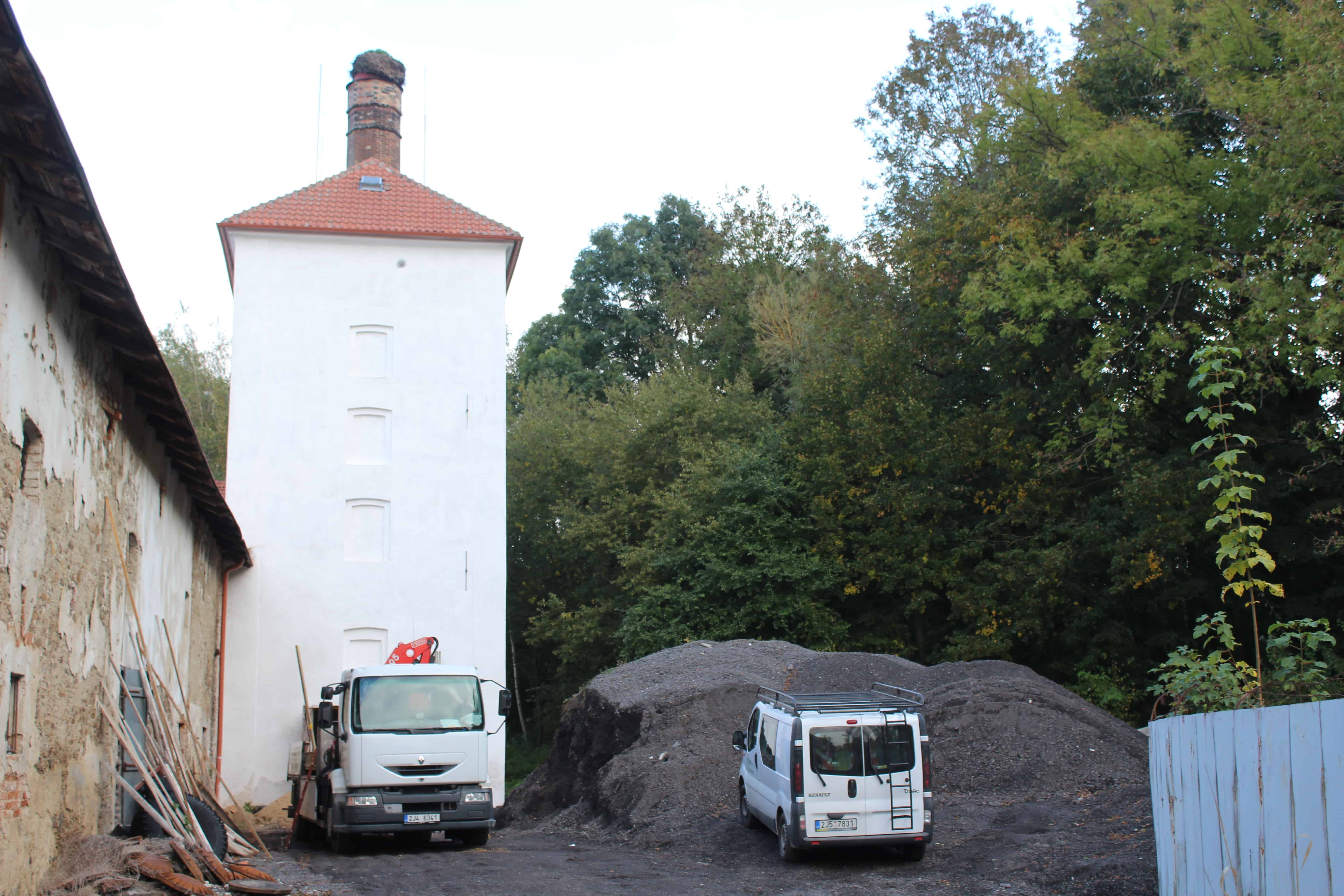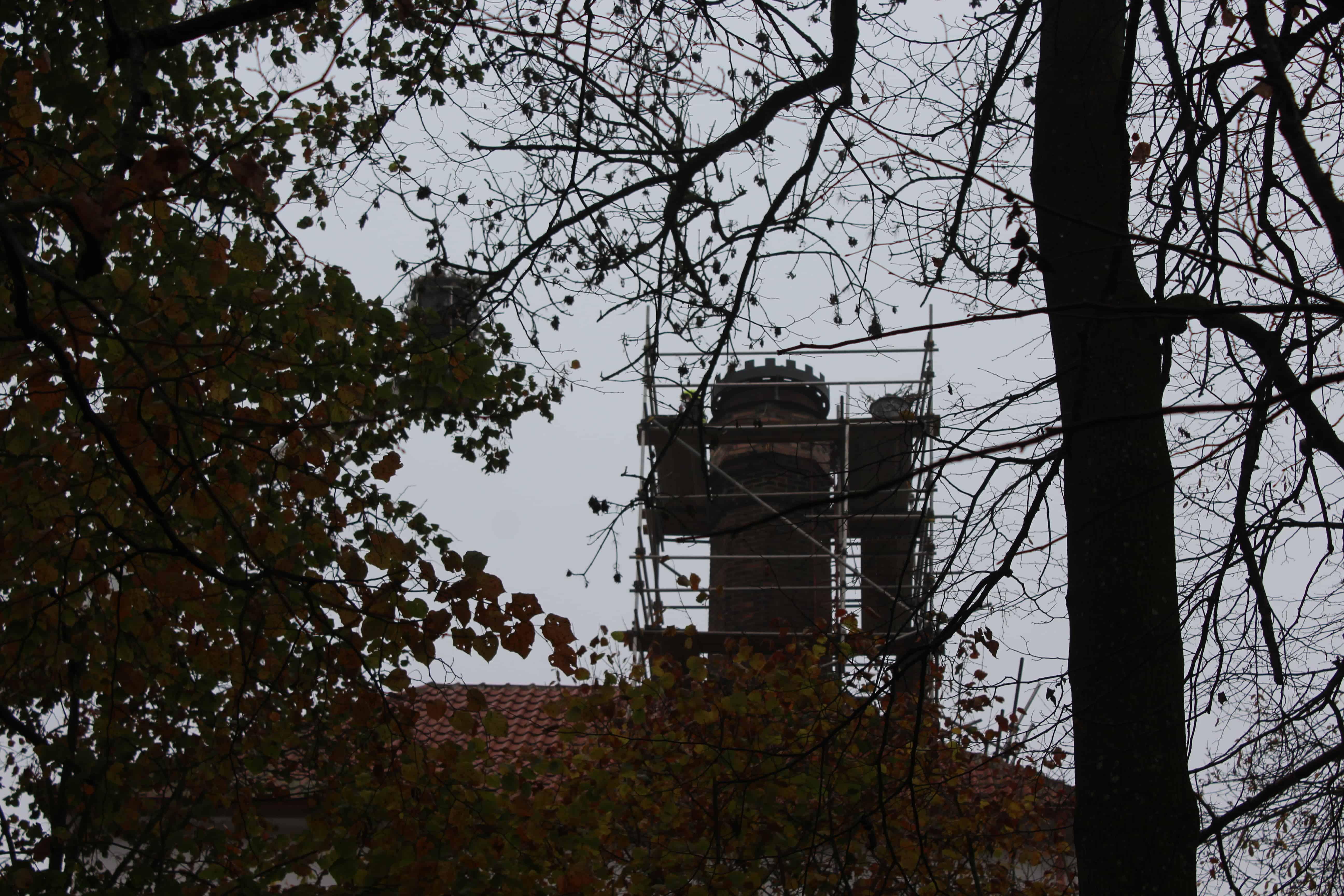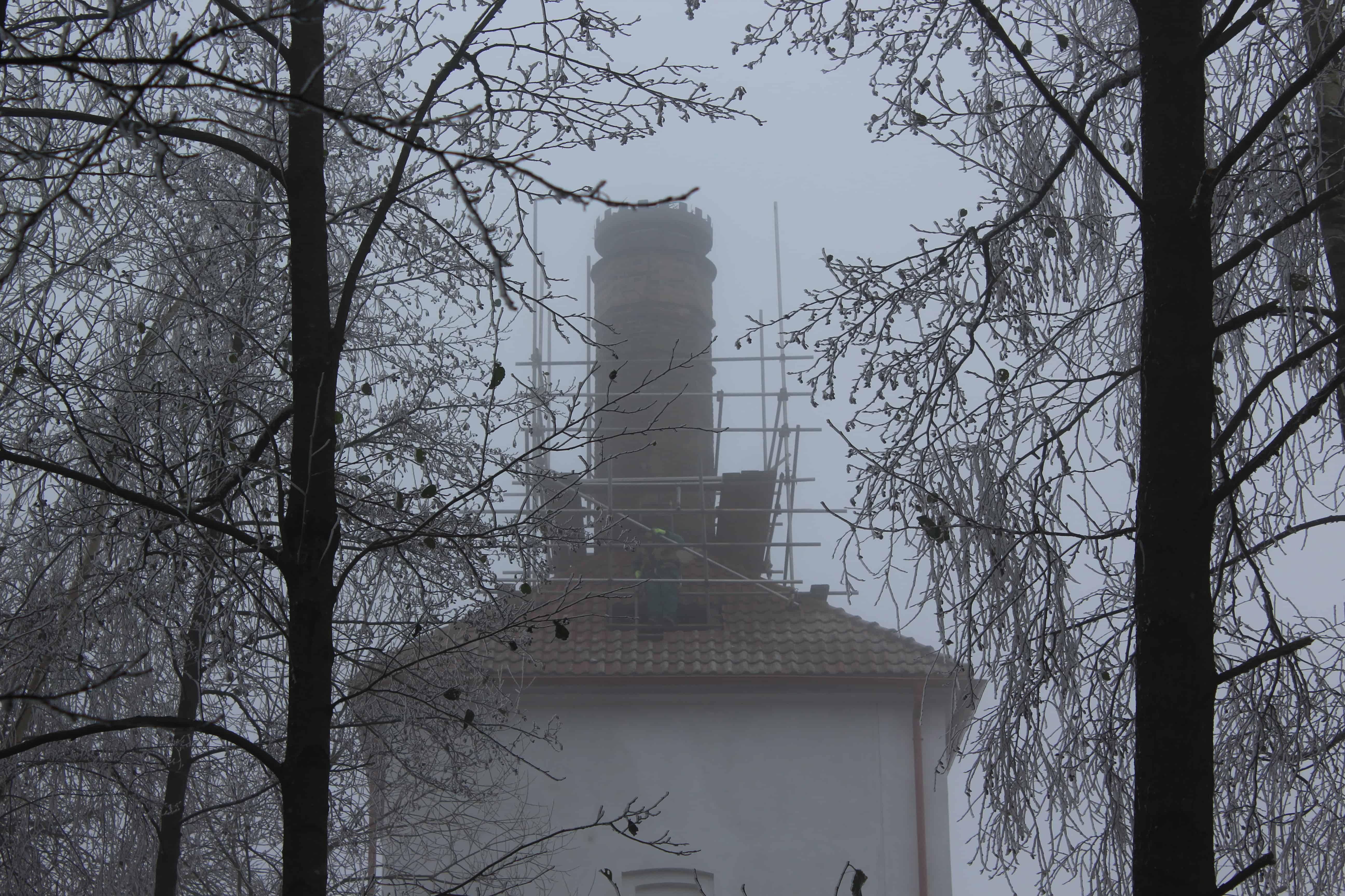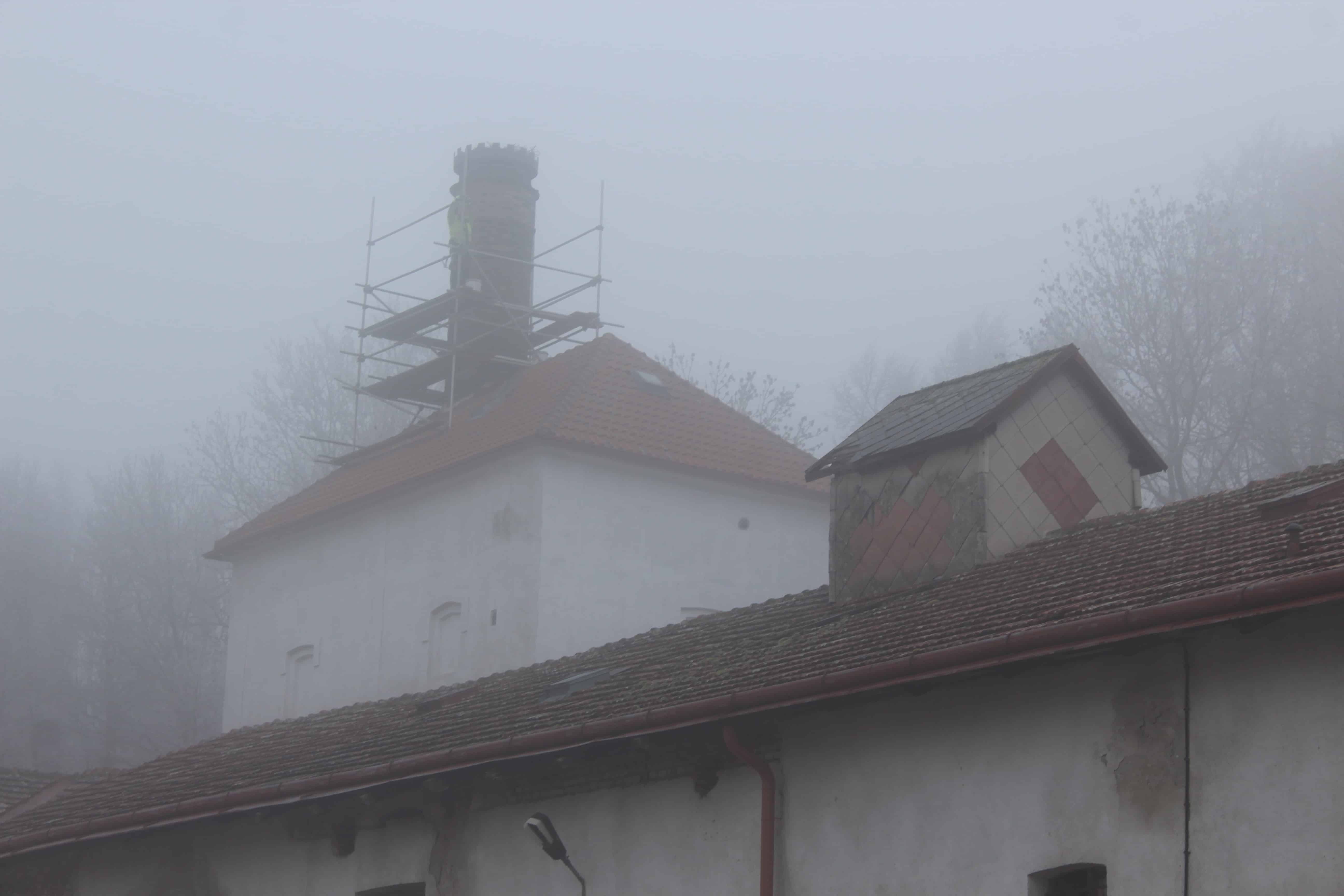 Na pozadí obrázku se nachází jeden z kalfasů s větvemi pro hnízdo.